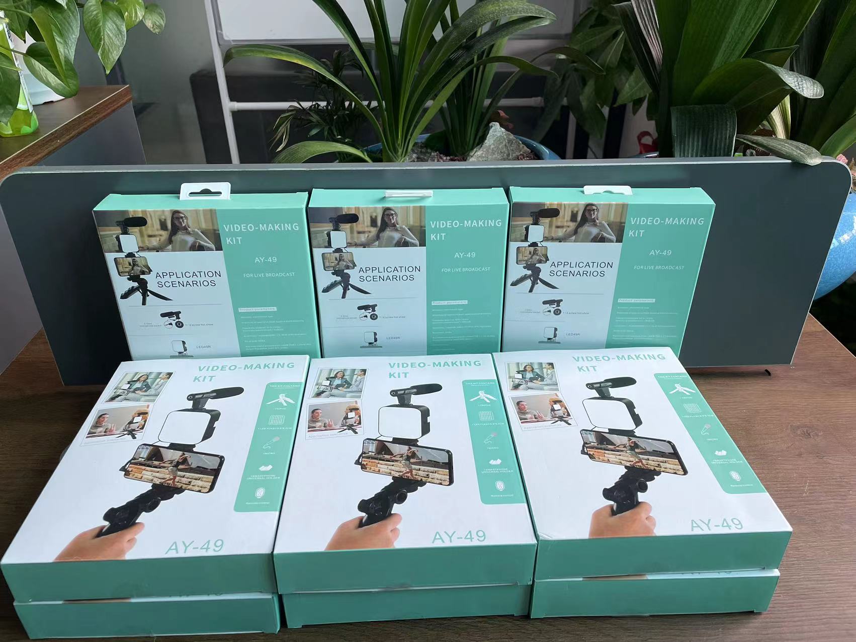 بدل شراء معدات كثيرة، هذا الطقم يجمع إضاءة + مايك + حامل + ريموت في جهاز واحد وبسعر مناسب.